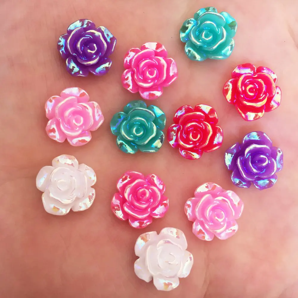60pcs AB Resin 12mm Mini Cute Flower Flatback Rhinestone Scrapbook Ornaments DIY Wedding Appliques Craft W82*2