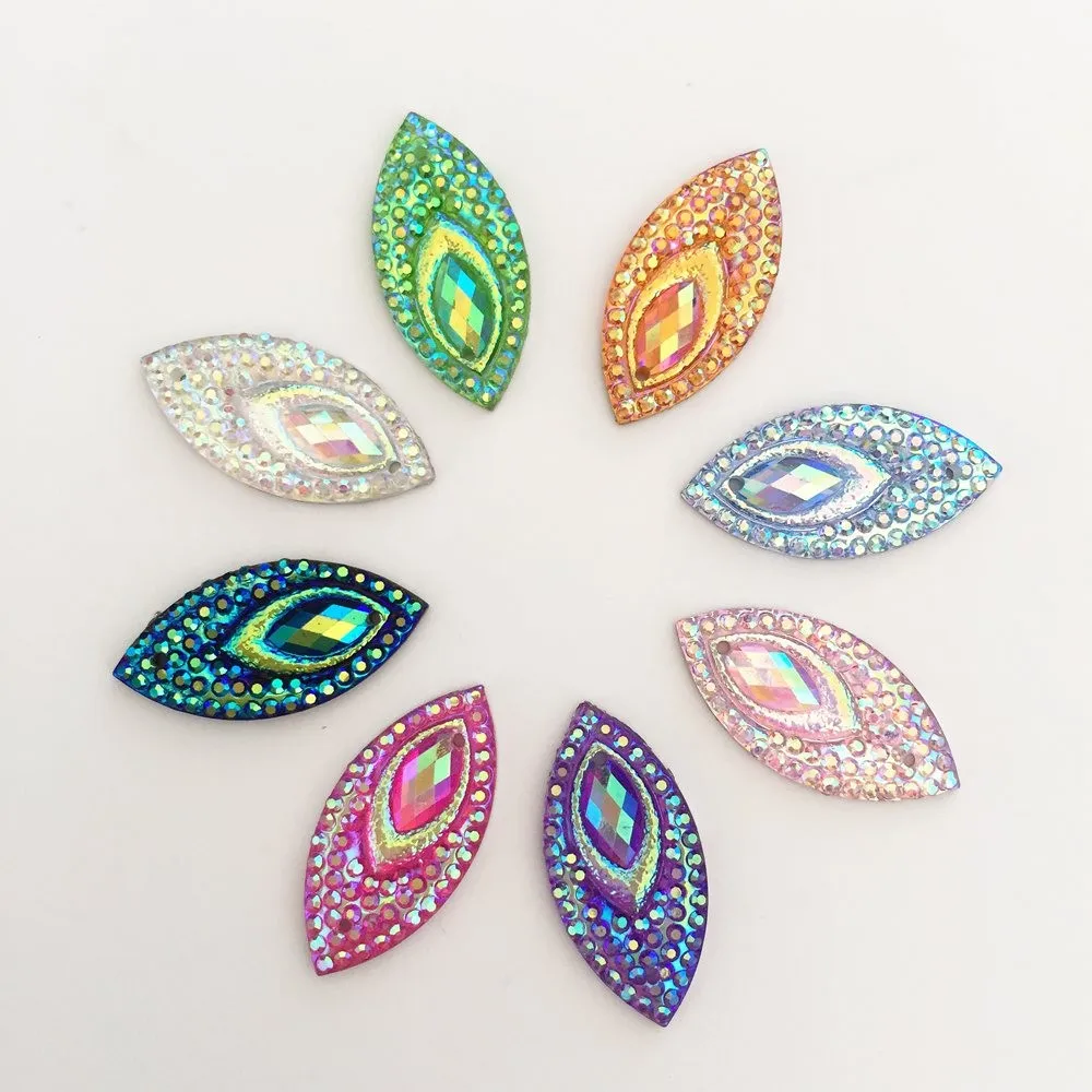 40PCS AB Resin 11*22mm Horse eye Flatback Peacock Rhinestone Ornaments DIY Wedding appliques 2 hole buttons SD34*2  Read more