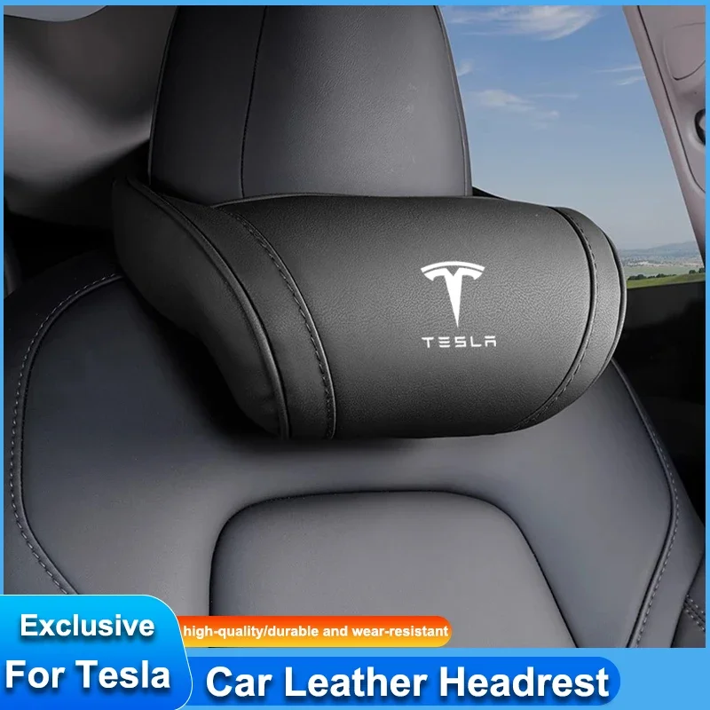 Leather Car Seat Headrest Memory Foam Comfort Neck Pillow For Tesla Model 3 Y S X Cybertruck Juguete Coil Highland Auto Interior