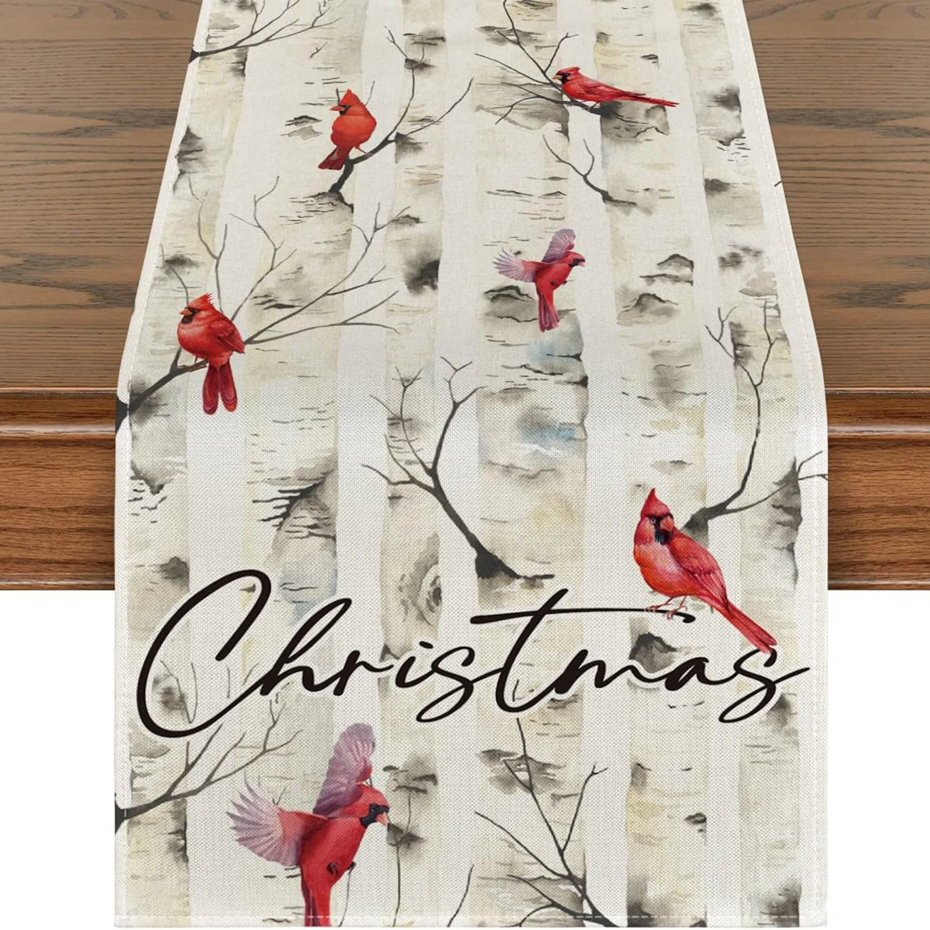 1pc Festive Christmas Linen Table Runner, Cardinal & Tree 2D Print Table Linen for Holiday Dining & Celebration  Read more
