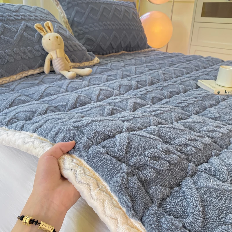 Thick Coral Fleece Mattress Pad Warm Bed Blanket Pads for Winter Solid Color Mattress Protector Cover for Double Beds