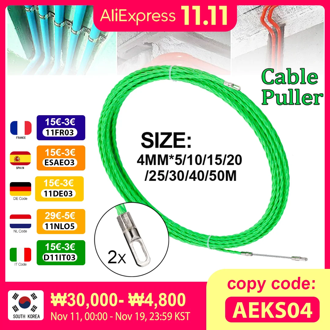 4mm 5M~40M Fiberglass Cable Puller Electric Cable Guide Device Nylon Duct Snake Wire For Electrician Fish Tape Wire Aid Tool  Read more