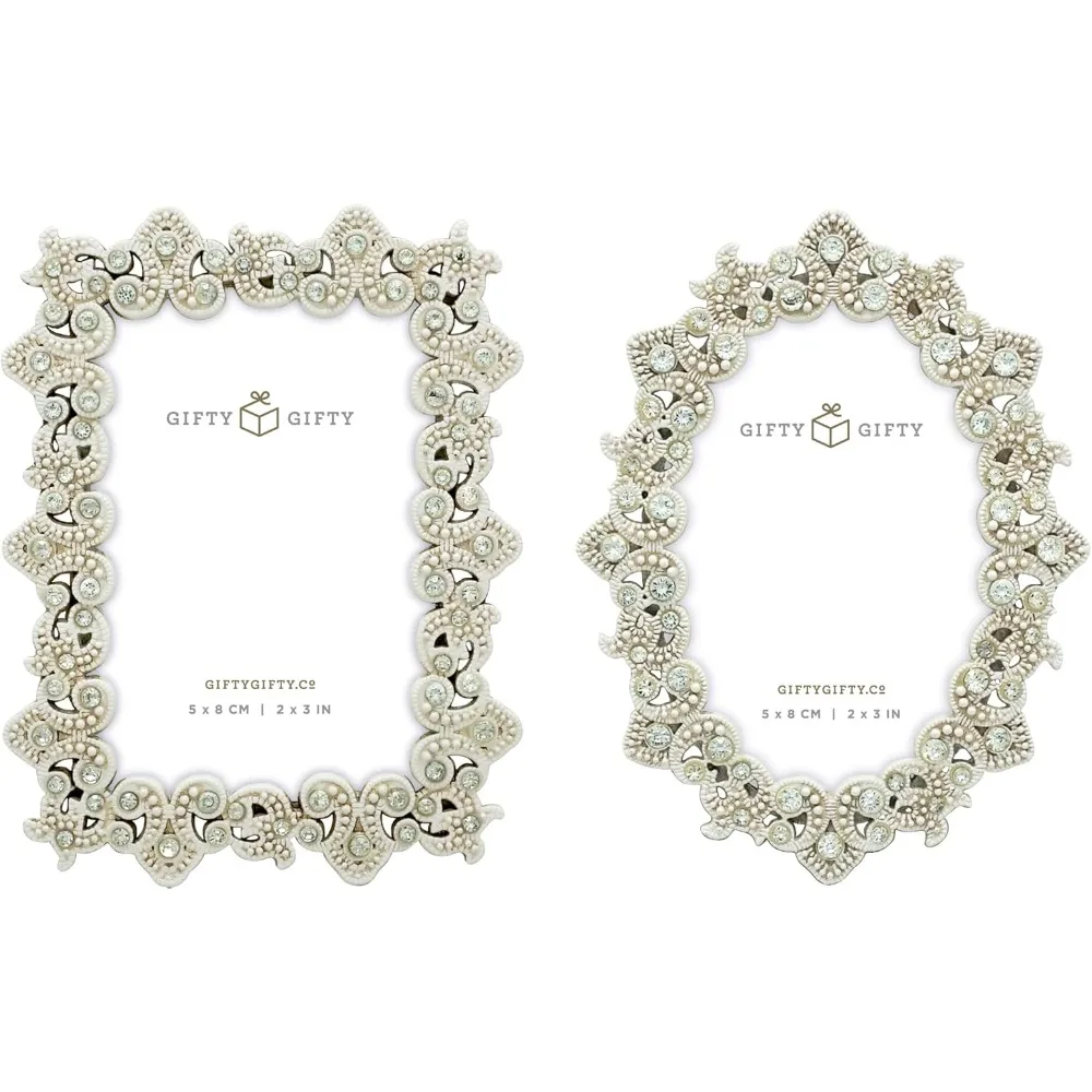 Vintage Jeweled Small Picture Frame Set of 2 Mini Photo Frame Set 2x3 inch for Tabletop Display Desk Small Picture Frames Perfec
