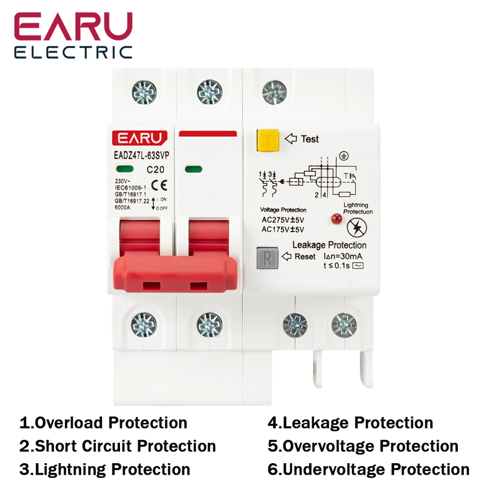 2P 230V SPD Residual Current Circuit Breaker With Overload Overvoltage RCBO RCCB With Lightning Protection MCB Leakage Protector  Read more
