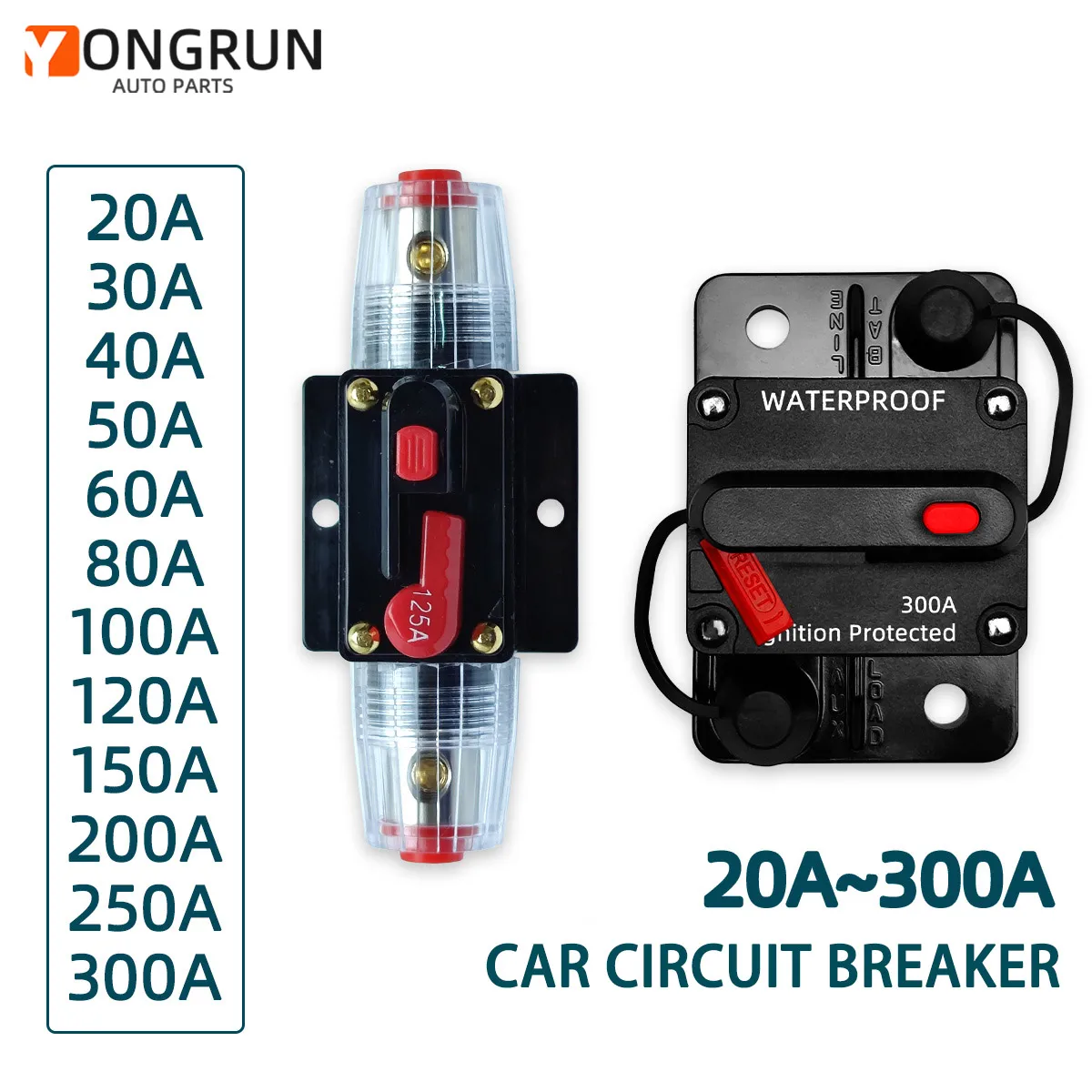 30A to 300A circuit breaker fuse reset, car stereo inline fuse holder, waterproof marine circuit breaker reset fuse 12V-48V DC