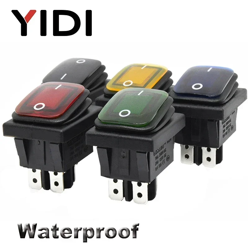 16A 250VAC KCD4-201 Waterproof Rocker Switch 12V 220V Red Green Blue Yellow Light Illuminated DPST Switch 4pins on off
