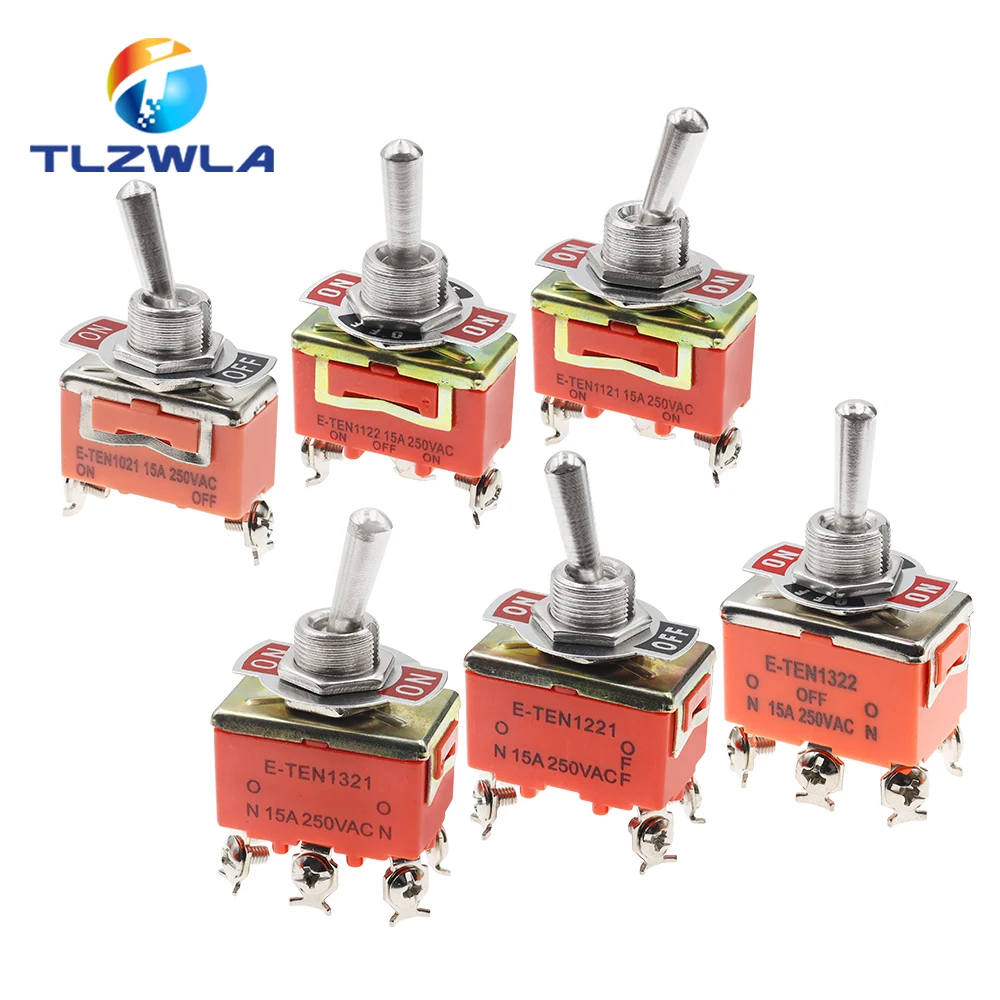 1PCS 15A 250V Toggle Switch E-TEN1322 1021 1122 1221 1321 3Pin on-off SPST Rocker Switch 6Pin on-off-on on-on DPDT Waterproof Ca