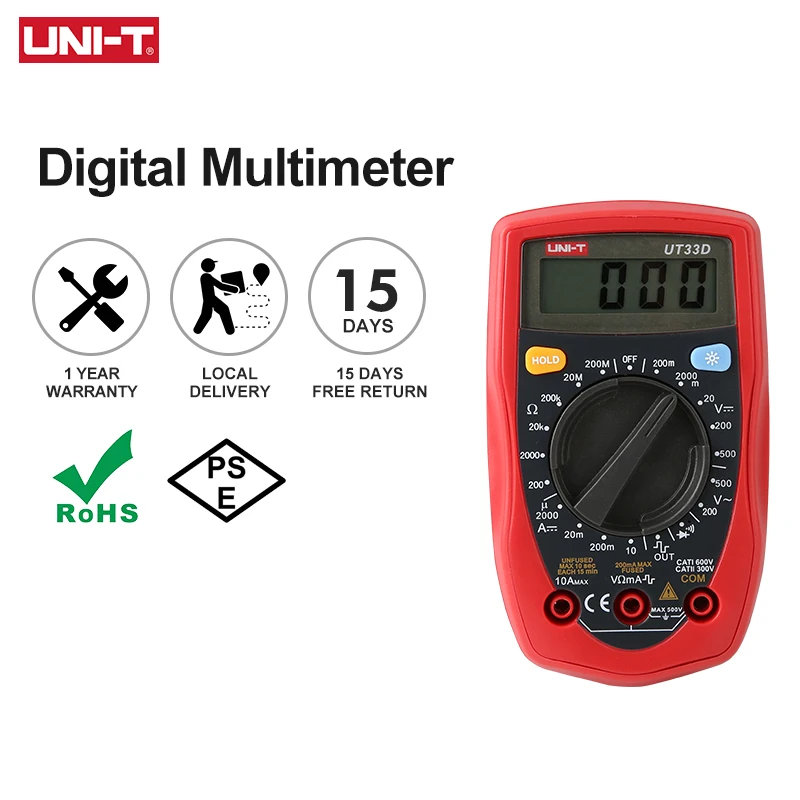 UNI-T UT33D Pocket Multimeter Digital Professional AC DC Ammeter Voltmeter Resistance Tester Multi Meter