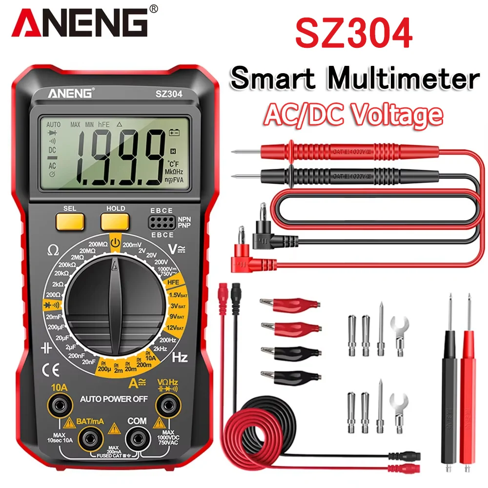 Smart Digital Multimeter ANENG SZ304 AC/DC Voltmeter Ammeter Non-contact Voltage Detector Current Test Hz Diode Capacitor test