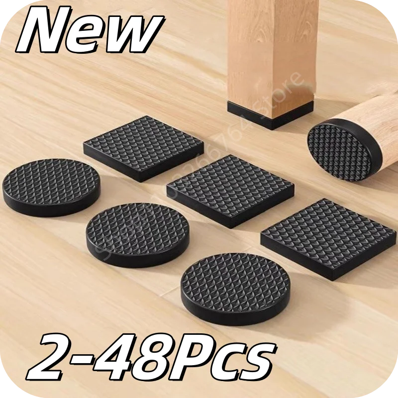 2-48Pcs Black Chair Leg Furniture Anti Slip Mat Bumper Damper Self Adhesive Table Feet Protector Floor Protector Pads Hardware
