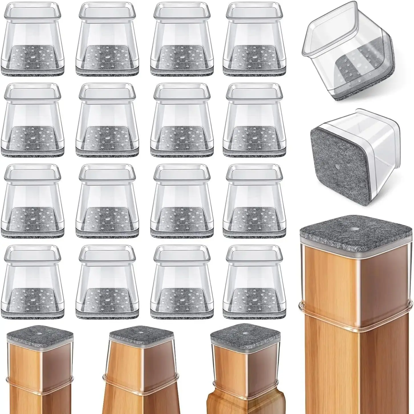 16PCS Silicone Chair Leg Floor Protectors with Wrapped Felt Sofa Table Feet Pads Non Slip Reduce Noise for Hardwood Floors