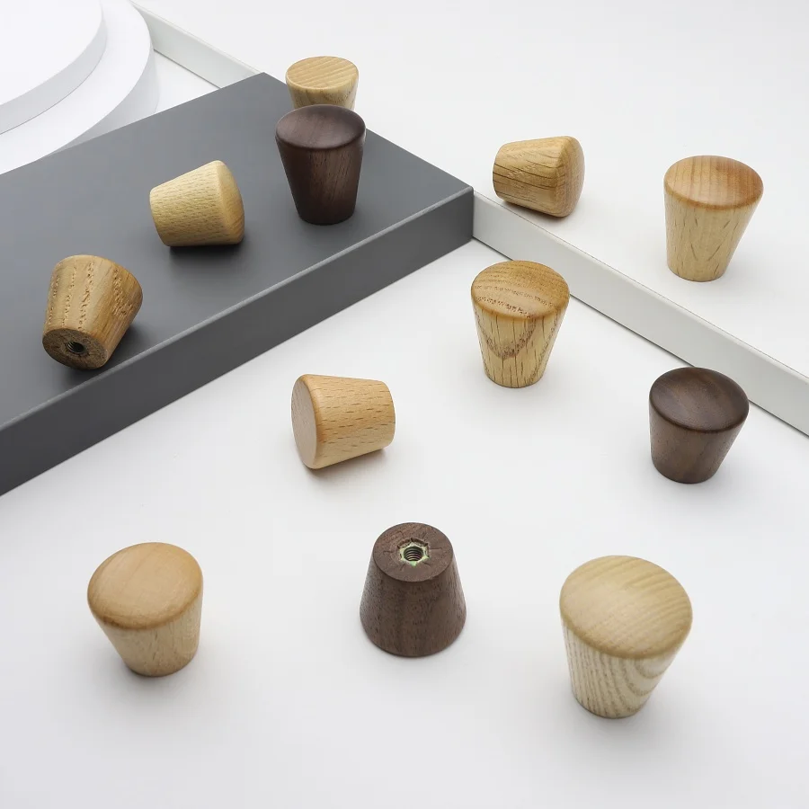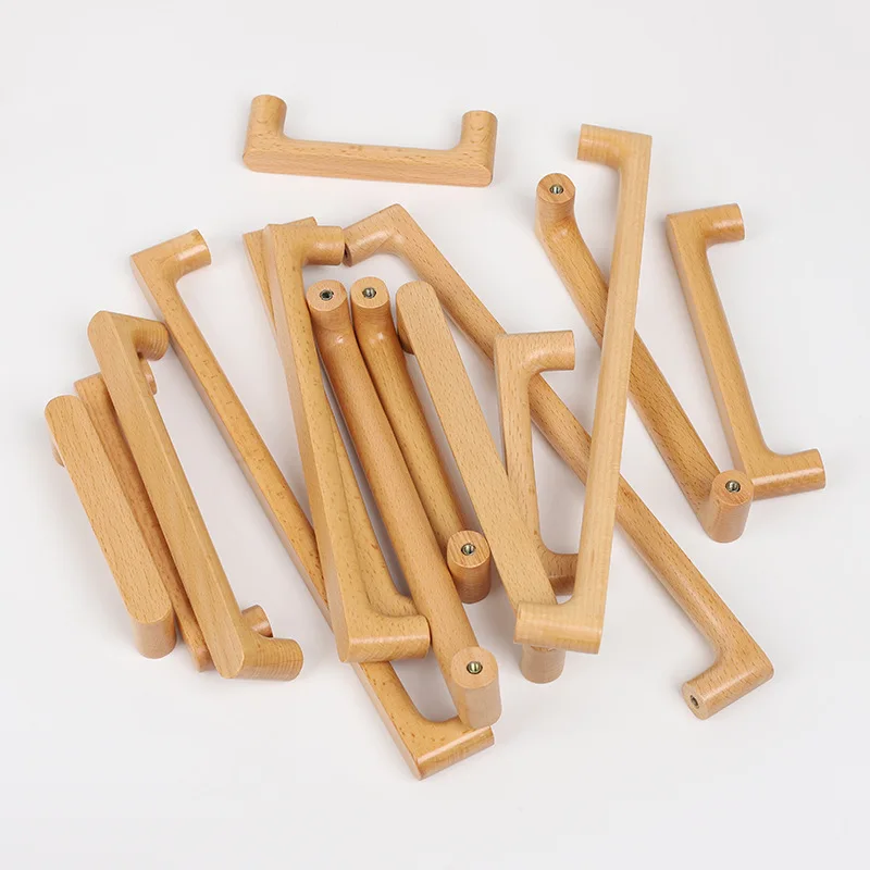 Nordic Wooden Solid Hardware Pull Furniture Handles Beech Wood Kitchen Cabinet Handles Wardrobe Cupboard Drawer Knobs