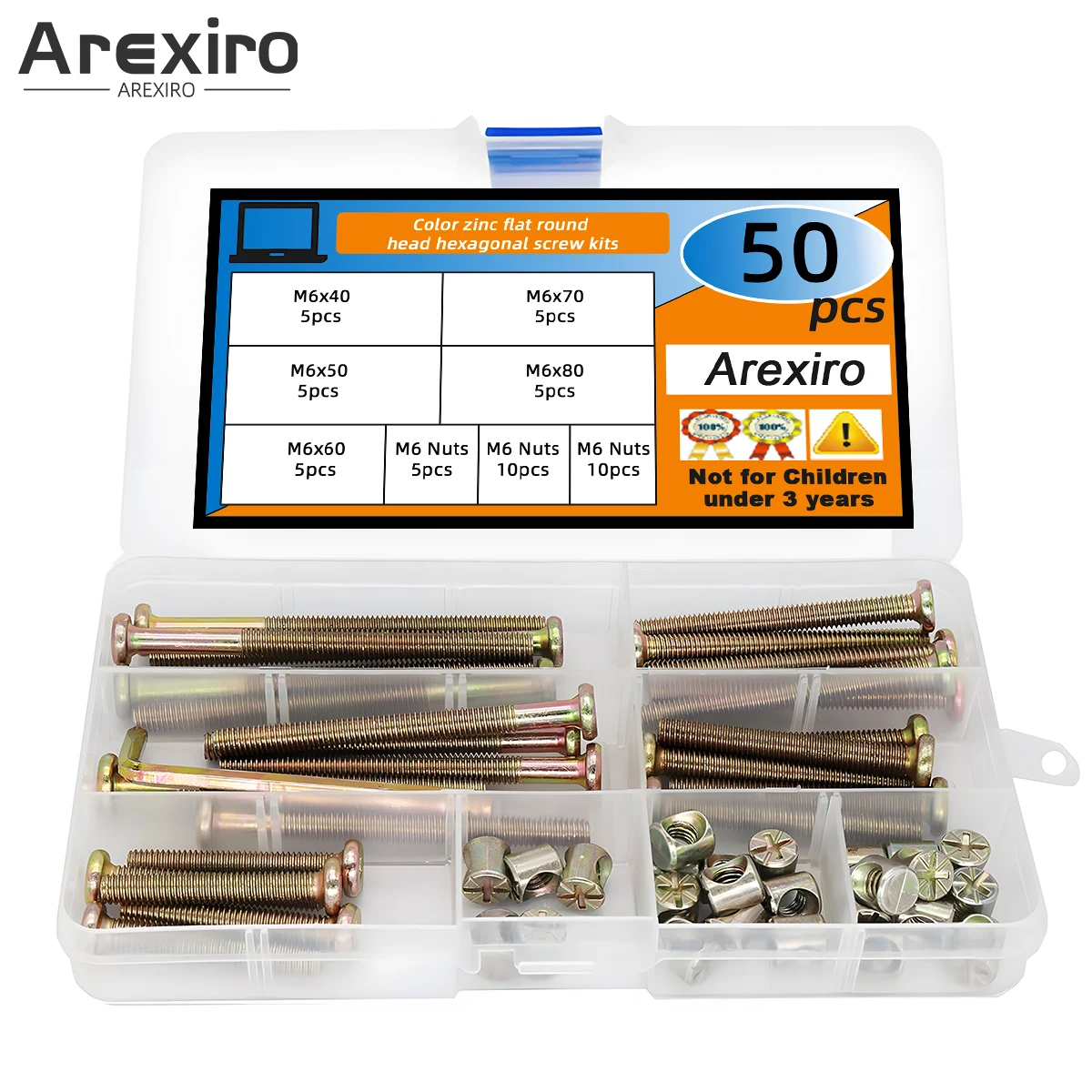 50Pcs Furniture Bolts Bed Screws M6 Socket for Head Screws Carbon Steel Hardware Replacement  Read more