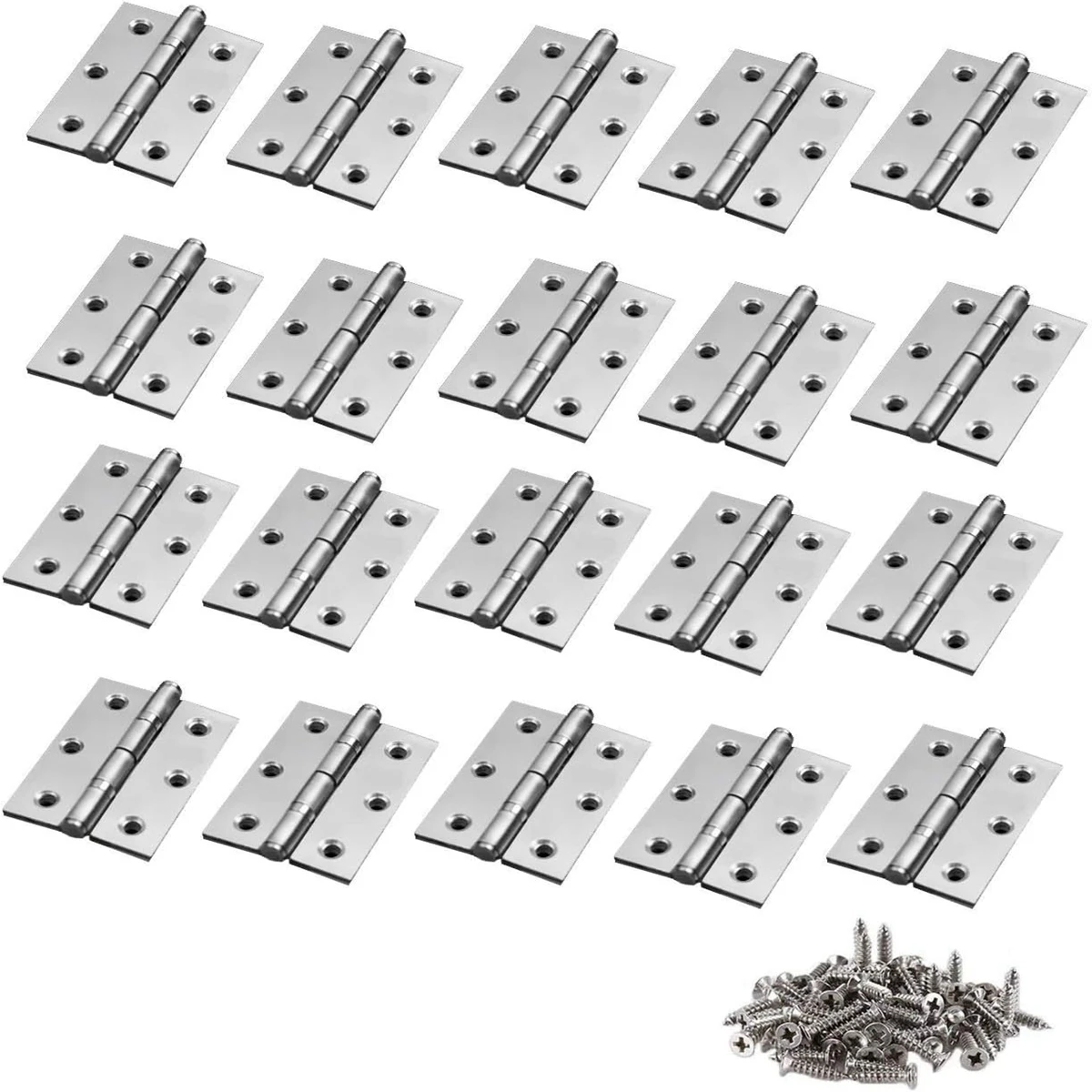 20 PCS Folding Butt Hinges, Small Box Hinge, Stainless Steel Tone Home Furniture Hardware Door Hinge with 120 PCS Screws.