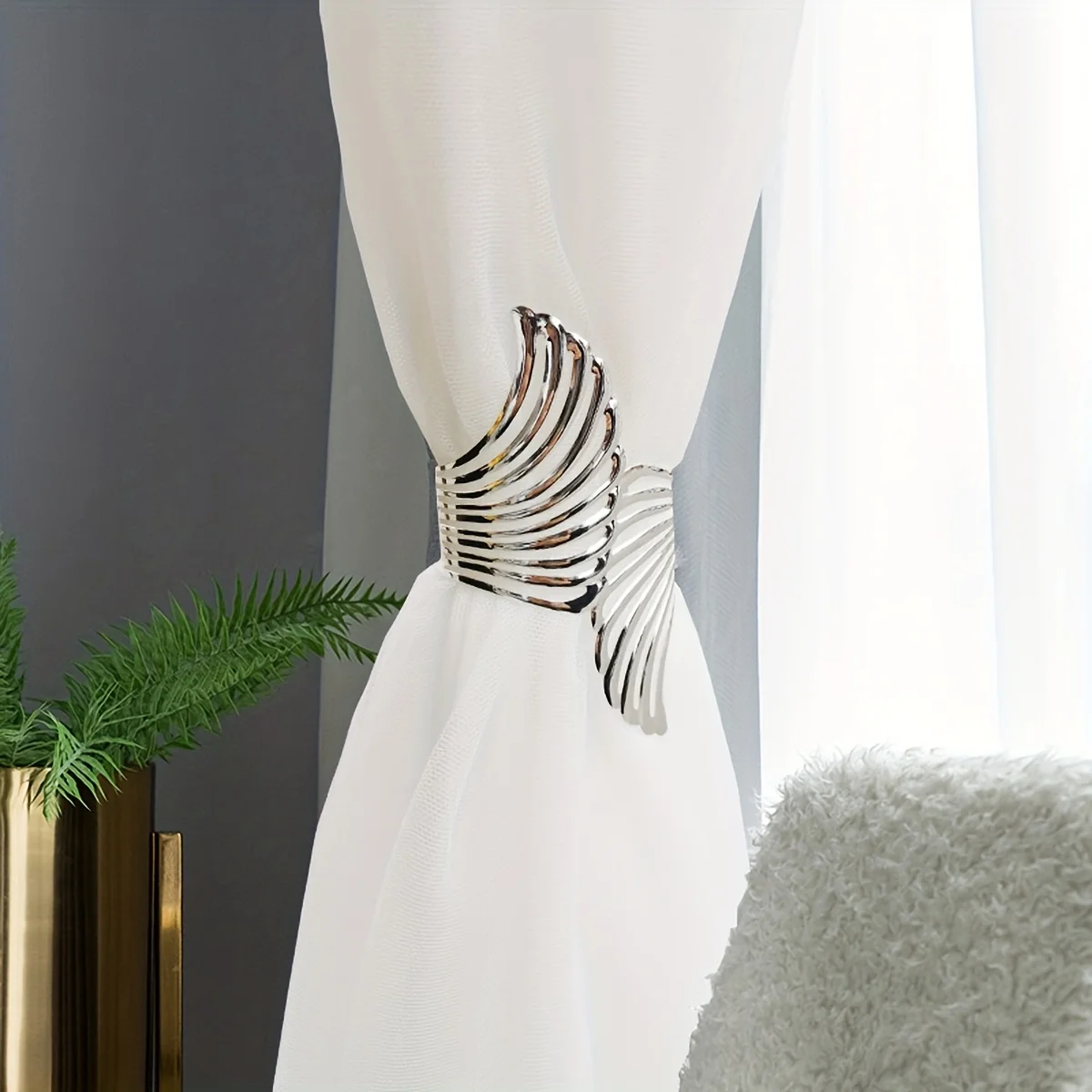 Angel Wings Curtain Tiebacks - No Drill Metal Clips for Sheer & Light Curtains, Modern Minimalist Window Holders
