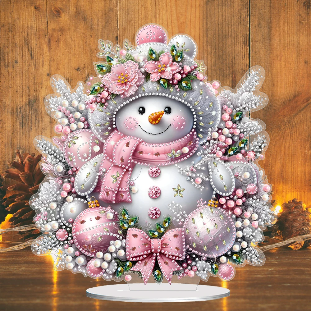 Christmas Snowman Diamond Painting Tabletop Ornaments Kit Cute 5D DIY Diamond Art Tabletop Decorations for Adults Beginner