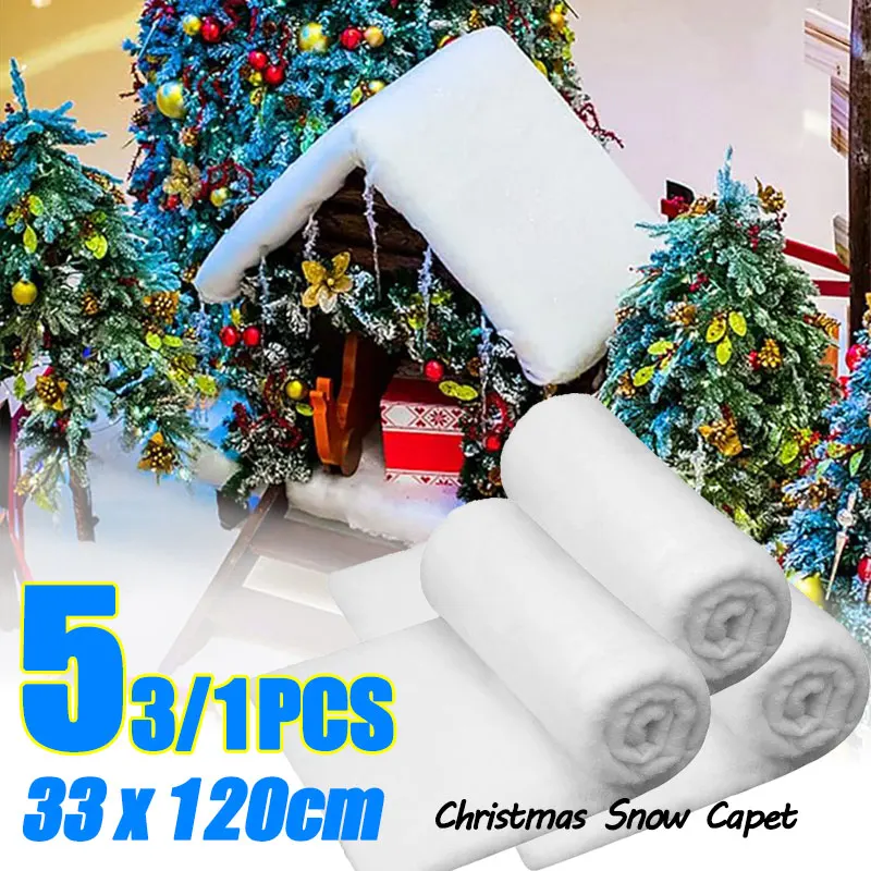 5/1PCS Artificial Christmas Fake Snow Cotton Carpet Fluffy Fiber Stuffing White Snow for Xmas Tree Ornament Christmas Decoration  Read more