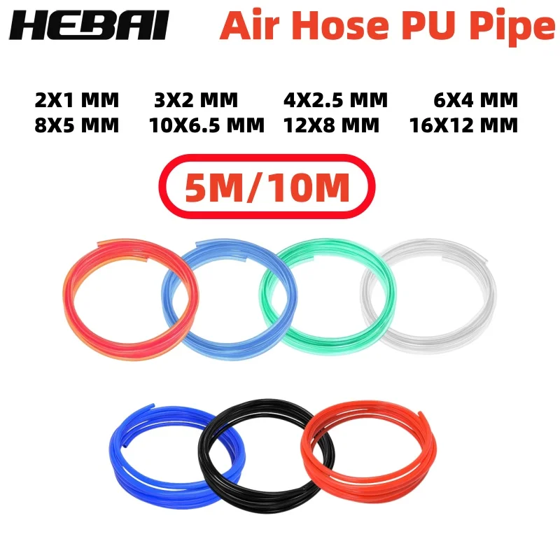 HEBAI 5M/10M Pneumatic Hose Compressor Hose Air Tube 4*2.5mm 6*4mm 8*5mm 10*6.5mm 12*8mm 14*10mm 16*12mm Air Hoses PU Pipe