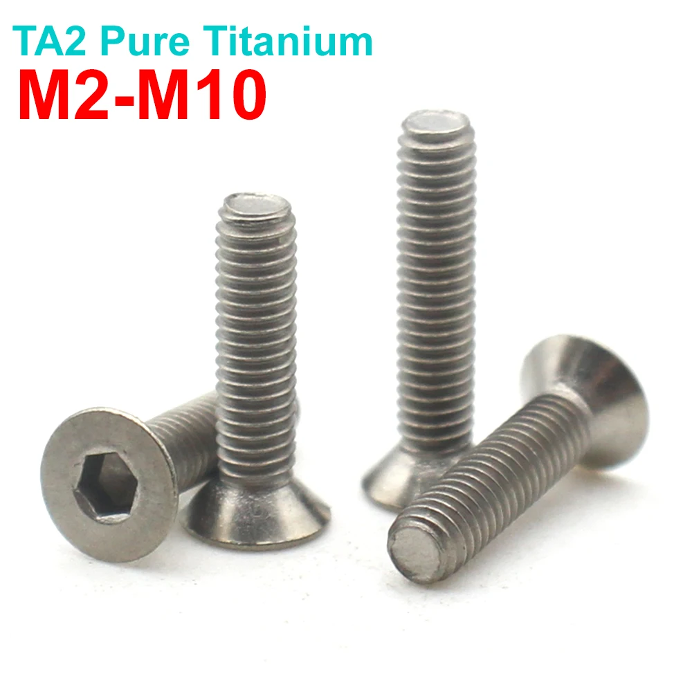 2-10pcs M2 M2.5 M3 M4 M5 M6 M8 M10 DIN7991 TA2 Pure Titanium Hexagon Hex Socket Flat Countersunk Head Allen Screw Bolt L=3-50mm  Read more