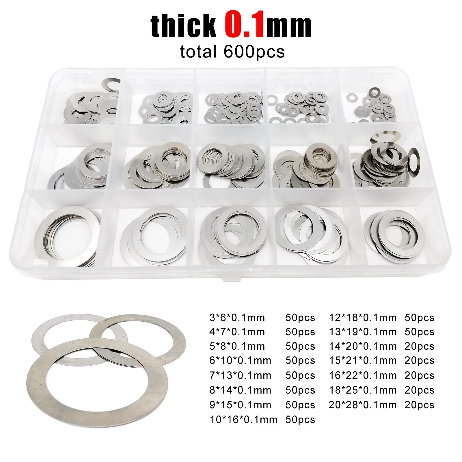 600pcs M3 M4 M5 M6 M8 M10 M12 M16 M20 304 Stainless Steel Ultra Thin Flat Washer Adjusting Shim Plain Gasket Assortment Kit Set  Read more