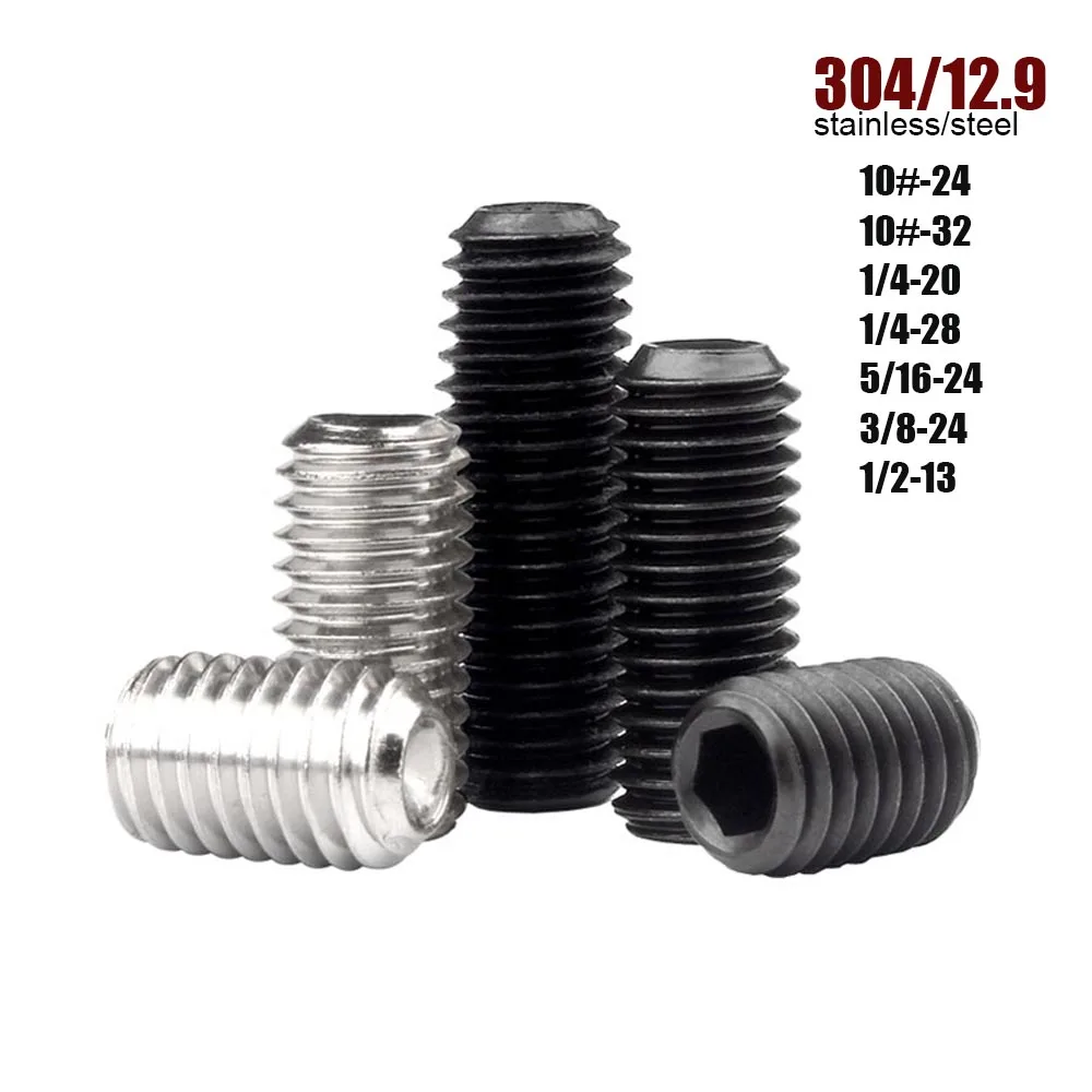 10pcs UNC 10#-24 1/4-20 US Coarse 304 Stainless 12.9 Black Steel Hex Hexagon Socket Allen Cup Point Grub Headless Bolt Set Screw  Read more