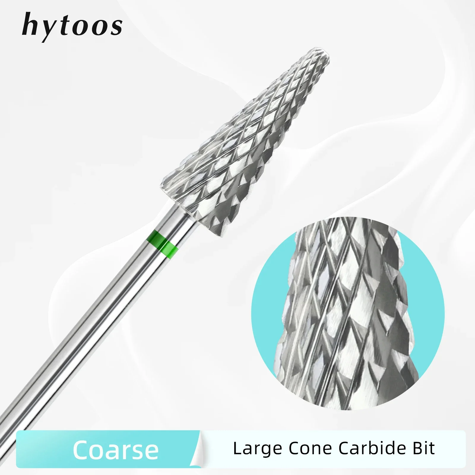 HYTOOS 15mm Coarse Cone Nail Drill Bits, 3/32" Right-Way Taper Carbide Nail Bit, Electric Cuticle Clean Gel Polish Removal Tool