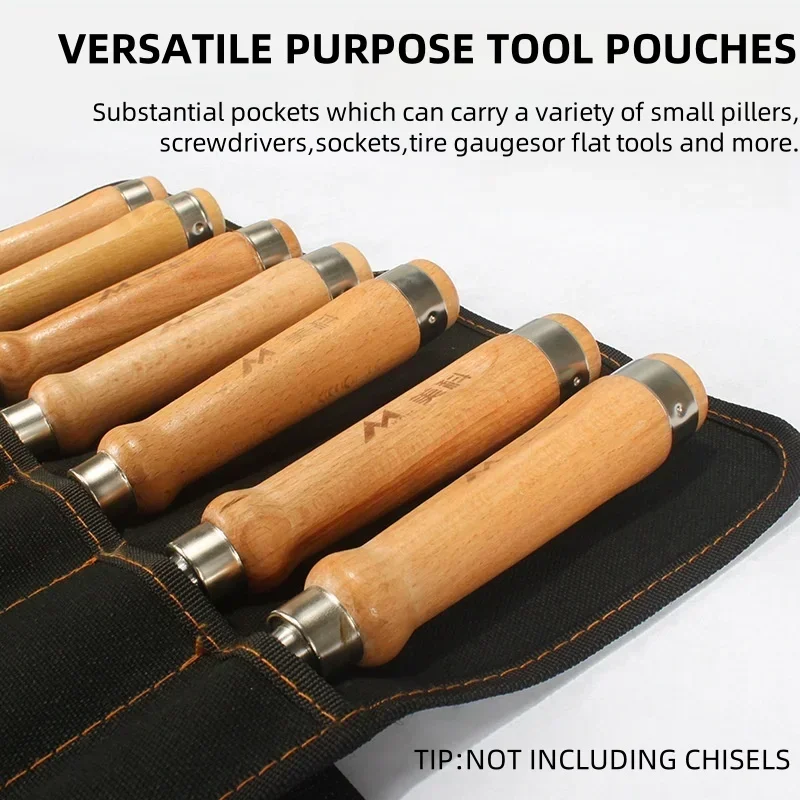 ALLSOMEChisel Carrying Case Canvas Pocket Tool Roll Holder Wrench Pouch Organizer For Knife Hammers Gouges Carpenter