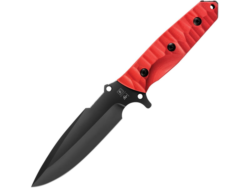 TB Outdoor Survival Fixed Blade Knife 9.75in Overall 4.5in Black PVD MOX Steel Blade Red Sculpted G10 Handle Kydex Sheath 11060036. Full tang. Glass breaker. Lanyard hole. Black Kydex MOLLE compatible belt sheath. Storage case. Specifications for TB...  Read more