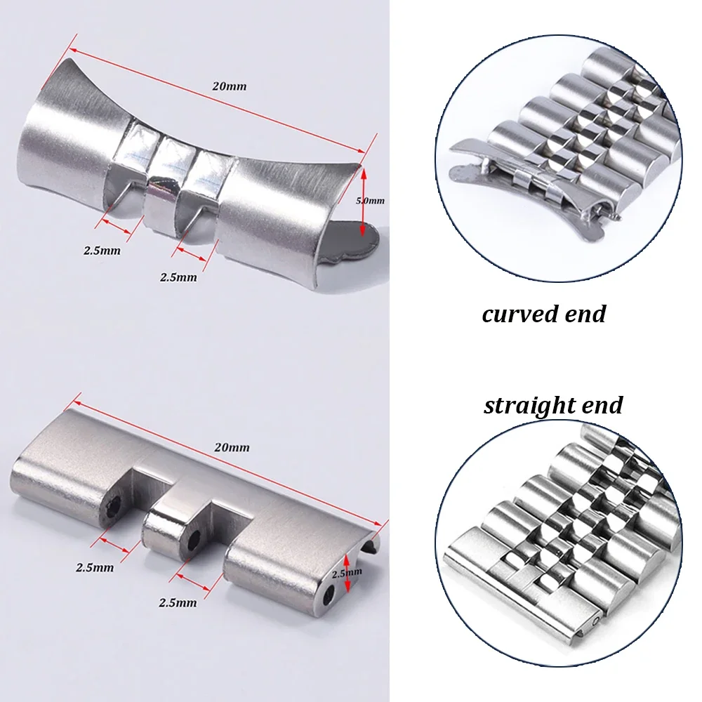 2pcs Stainless Steel Straight Curved End Link 20mm 22mm for Seiko SKX009 SKX007 Connector for Jubilee Oyster Watch Band Adapter