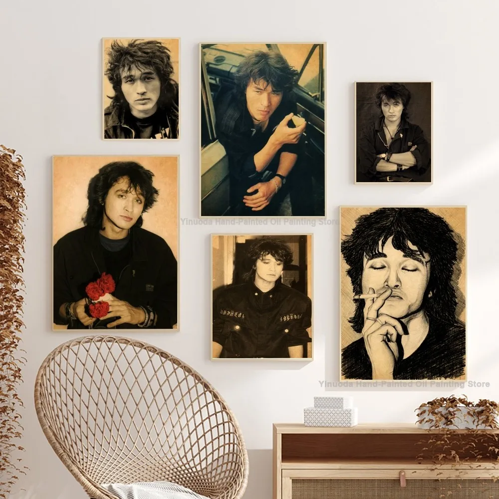 Retro Print Poster Singer Viktor Tsoi Music Paper Waterproof High Quality Sticker Home Living Room Bar Cafe Wall Decoration
