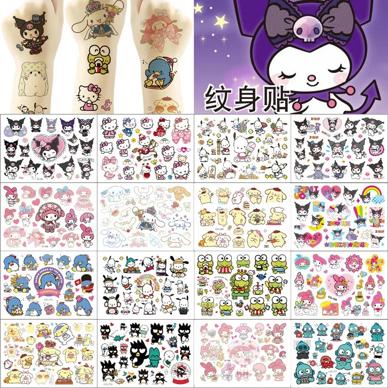 1Pcs Sanrio Hello Kitty Cat Tattoo Sticker Kuromi Mymelody Tattoos Cinnamoroll Stickers Cosplay Decor Temporary Waterproof Art