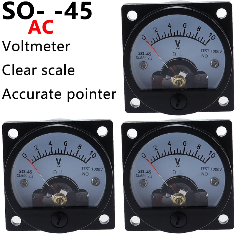 new Voltmeter SO-45 AC 1V 2V 5V 10V 15V 20V 50V 100V 150V 200V 300V 500V Round Analog Dial Panel Meter Voltmeter Gauge Black  Read more