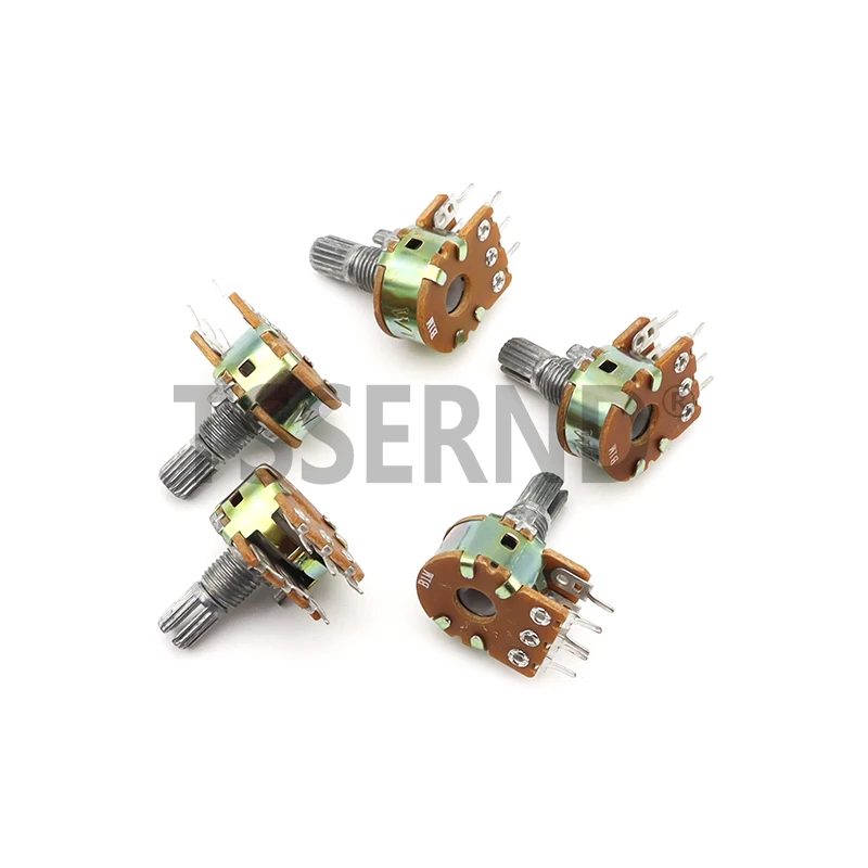 5PCS 6 Pin 20mm 1M 250K 100K 20K 10K 2K 1K Ohm Variable Resistors Dual Linear Rotary Carbon Film Taper Potentiometer Shaft  Read more