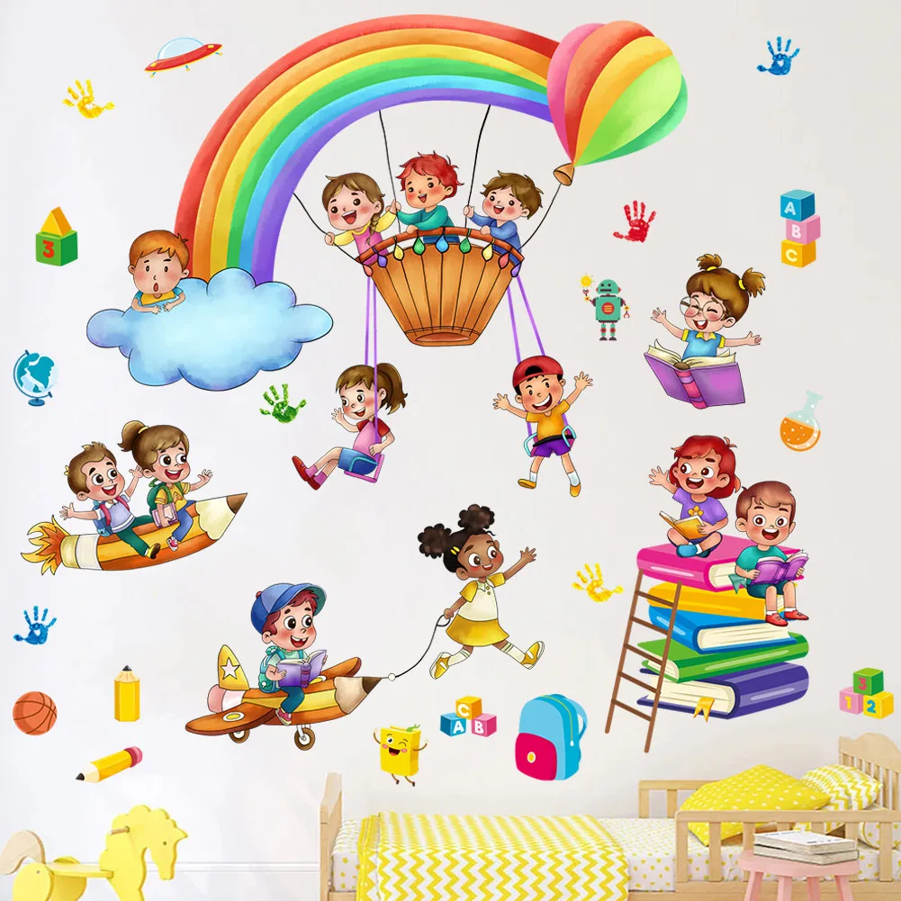 Rainbow Amusement Park Hot Air Balloon Wall Stickers Baby Room Bedroom Living Room Wall Stickers Art Murals