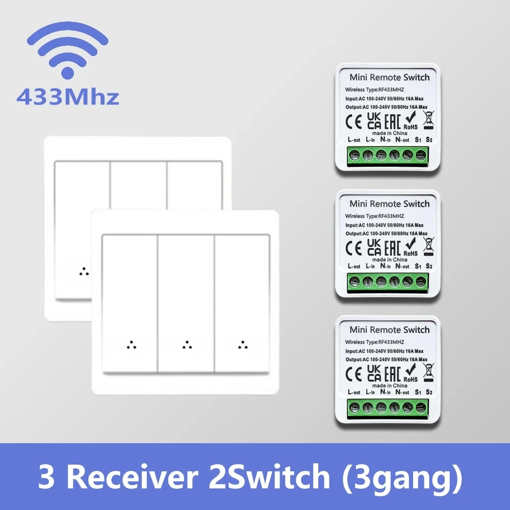 RF 433MHz Wireless Smart Wall Light Switch Panel Remote Control Mini Relay Receiver 1/2/3 Gang Push Button for LED Lightings Fan  Read more