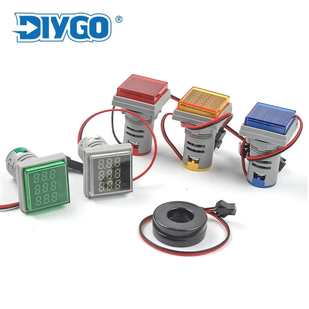 DIY GO Square LED Digital Voltmeter Ammeter Hertz Meter AC50-500V Signal Lights Voltage Current Frequency Combo Tester Meters