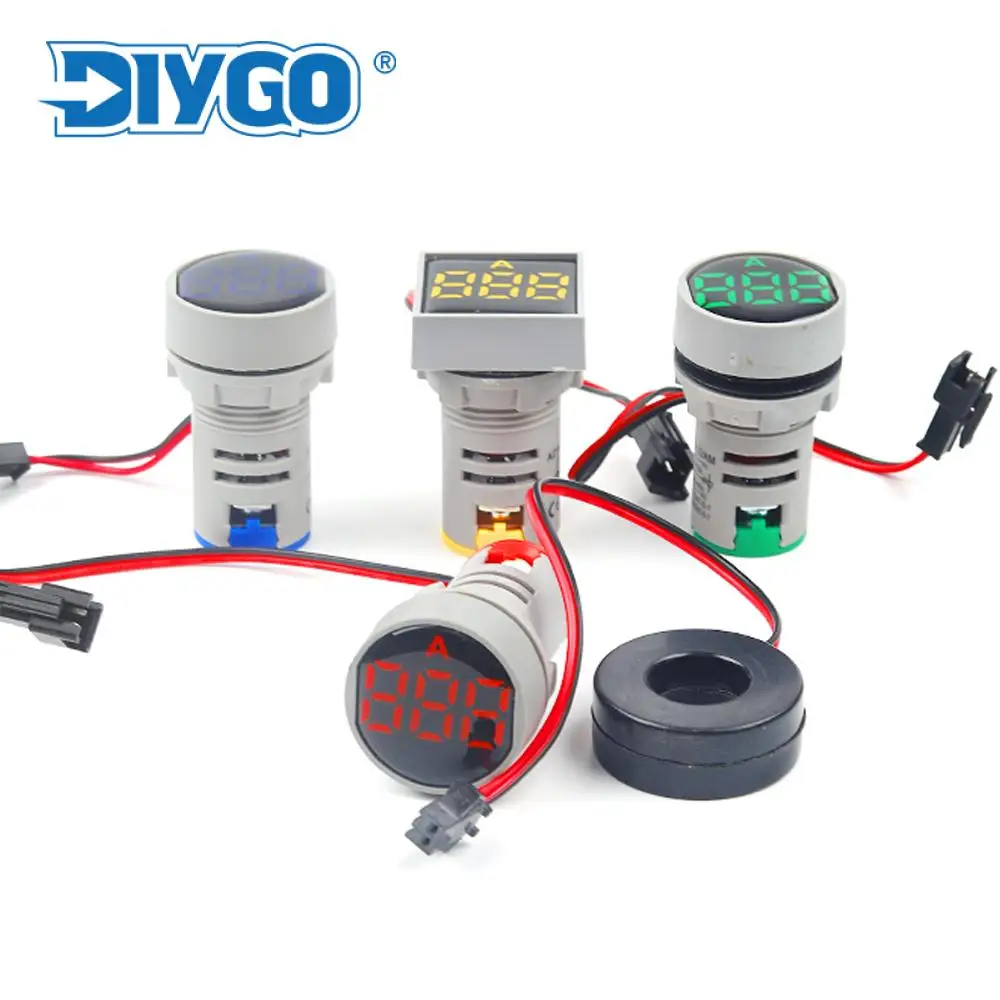 DIY GO 22mm Protective Film Square/Round Digital Current Meter indicator 0-100A amp Current Tester Meters LED Pilot Lamp Ammeter