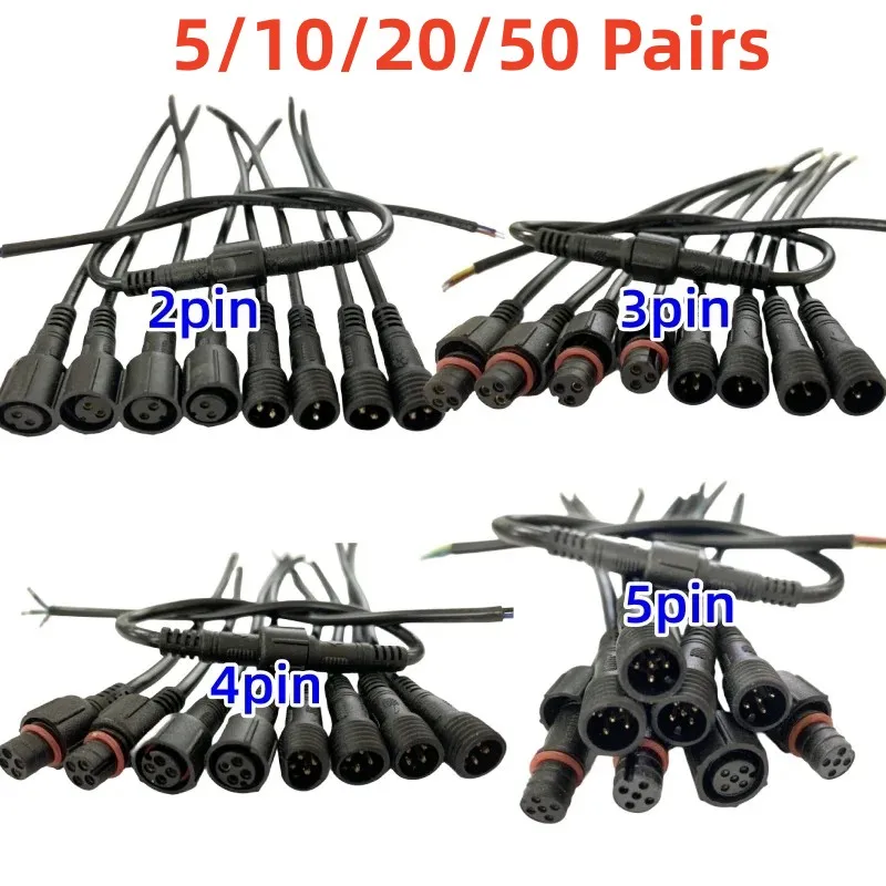 5/10/20/50 Pairs Male To Female 40cm Length Waterproof Cable 2pin 3pin 4pin 5pin Led Connector Black Wire for LED Strip Light WP  Read more
