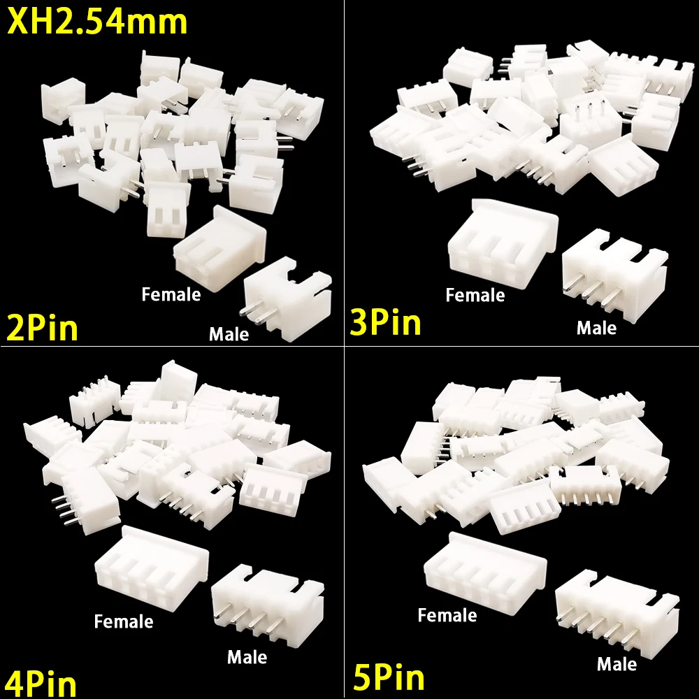 100Pcs JST XH 2.54 2/3/4/5Pin Male Female Material Connector Leads Pin Header Housing Terminal Plastic Shell Plug Female Socket
