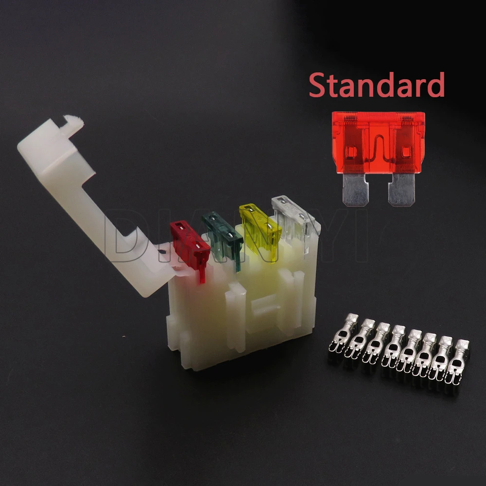 1 Set 4 Way AC Assembly Auto Fuse Holder with Terminal Middle Medium Fuse Box White Lighter Frontal for Standard Fuses