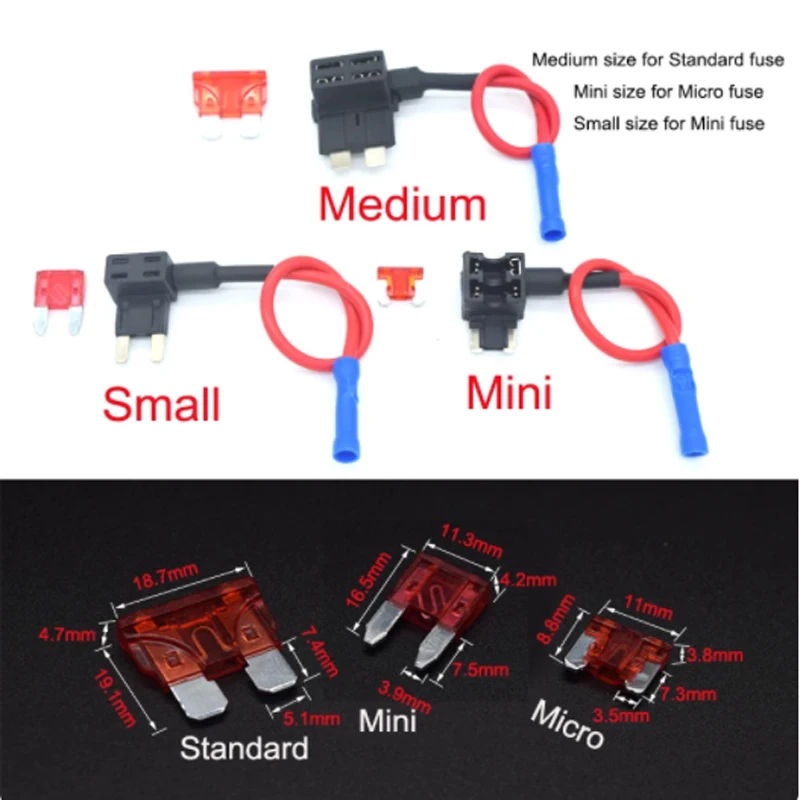 5pcs/2pcs12V MINI SMALL MEDIUM Size Car Fuse Holder Add-a-circuit TAP Adapter Micro Mini Standard ATM Blade Fuse  Read more