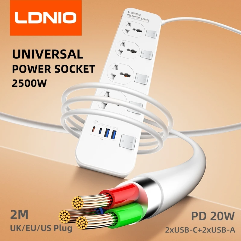 LDNIO UK US EU Plug Extension Multiple Universal Ruler Outlet 2m Electric Extension Board With Usb C Switch Socket Power Strips  Read more