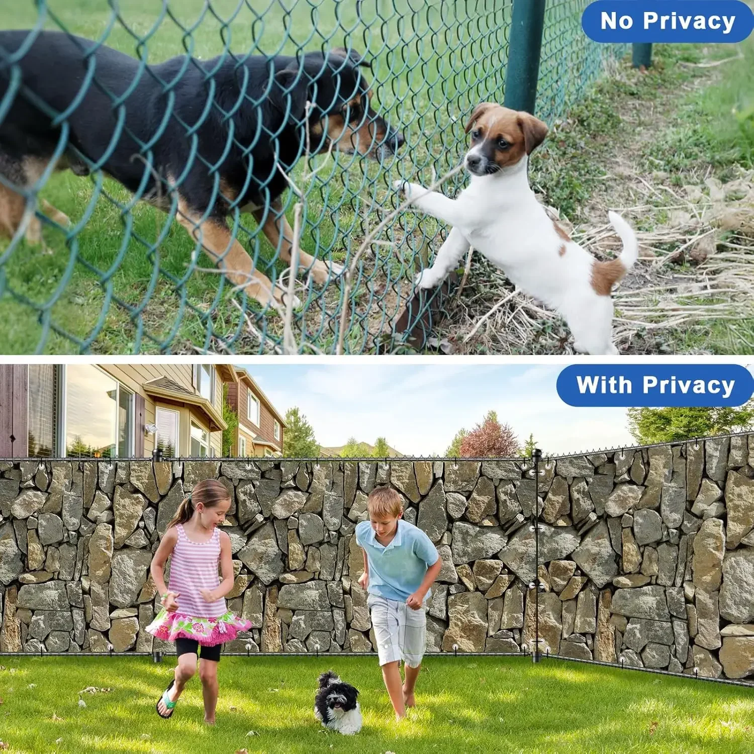 [XMSJ]4'x49'Customized PVC Printed Balcony Privacy Screen Fence, 450 GSM Outdoor Fence Cover with Zip Ties, Realistic Stone Wall