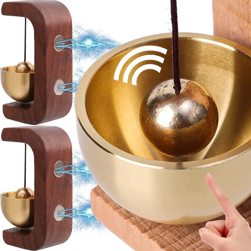 Magnetic Wood Doorbell Chime Hanging Wooden Wind Chimes Copper Bell Walnut Windbell Doorbells Vintage Door Bell Home Decorations