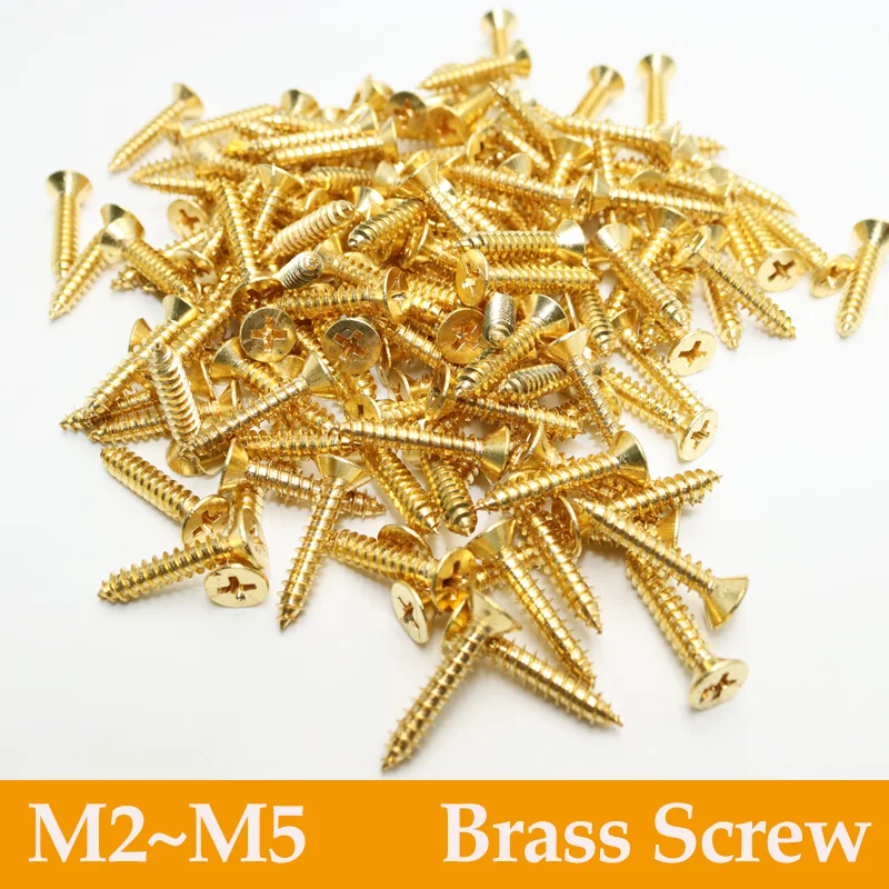 New Pure Brass Sink Countersunk Head Phillips Flat Self-tapping Screws M2 M3 M3.5 M4 M5 Thread Golden Bolts Wood Board Furniture