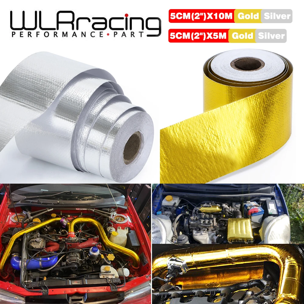 A Gold 2'' Thermal exhaust Tape Air Intake Heat Insulation Shield Wrap Reflective Heat Barrier Self Adhesive Engine 2 Inch 5/10M