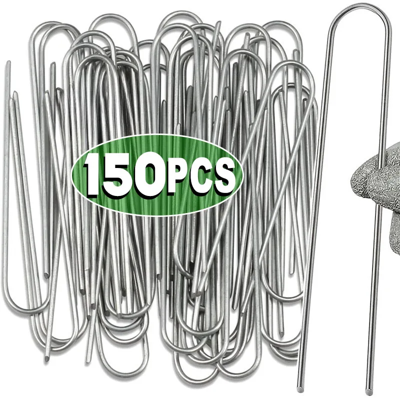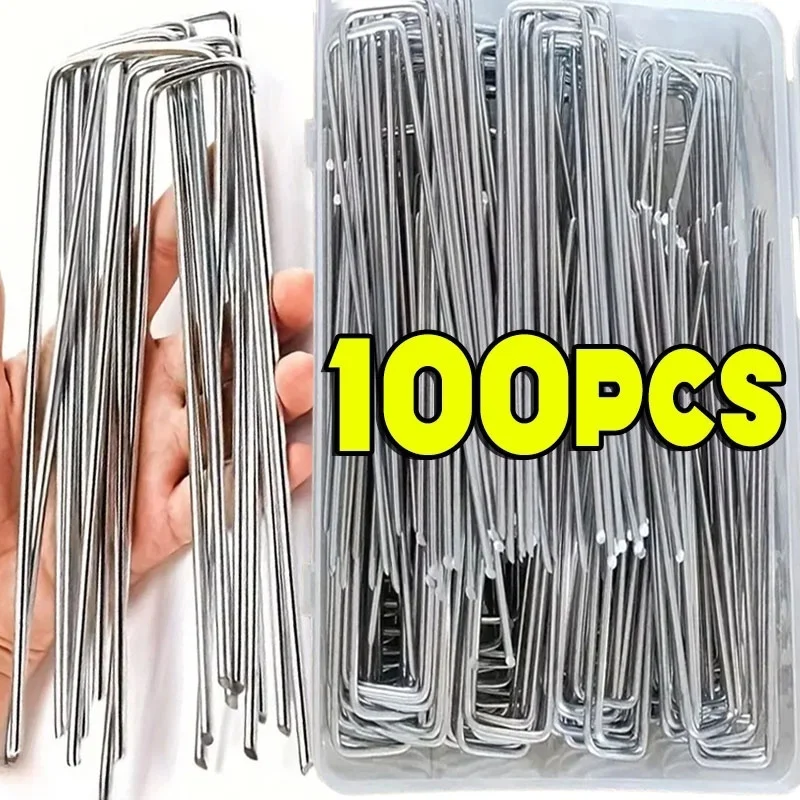 U-type Garden Staples Heavy-duty Fence Tubing Stakes Sod Pins Galvanized Landscape Spike for Holding Lawns Barrier Ground Nail  Read more