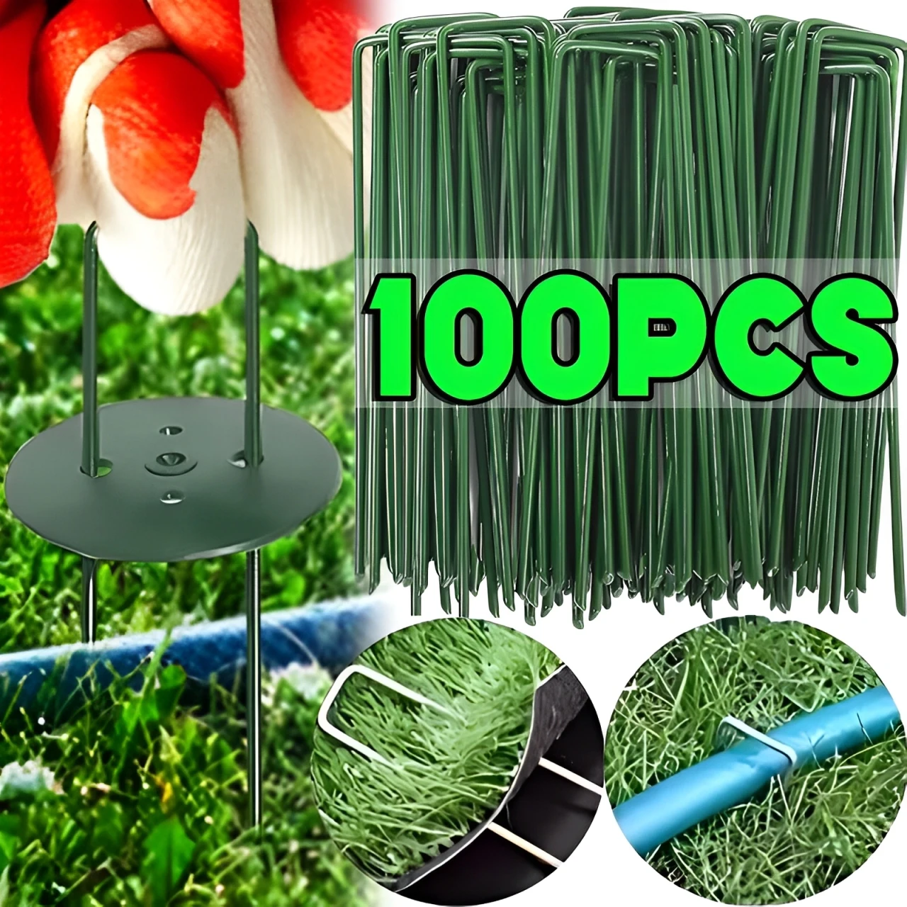 U-type Garden Staples Heavy-duty Fence Tubing Stakes Sod Pins Galvanized Landscape Spike for Holding Lawns Barrier Ground Nail