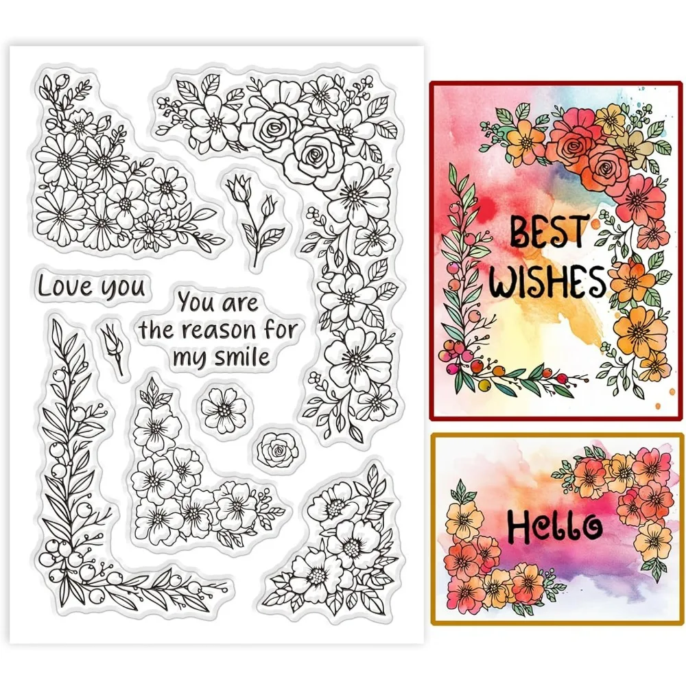 Plants Corner Clear Stamps Flower Rose Border Silicone Clear Stamp Seals Transparent Stamps for DIY Scrapbooking Card