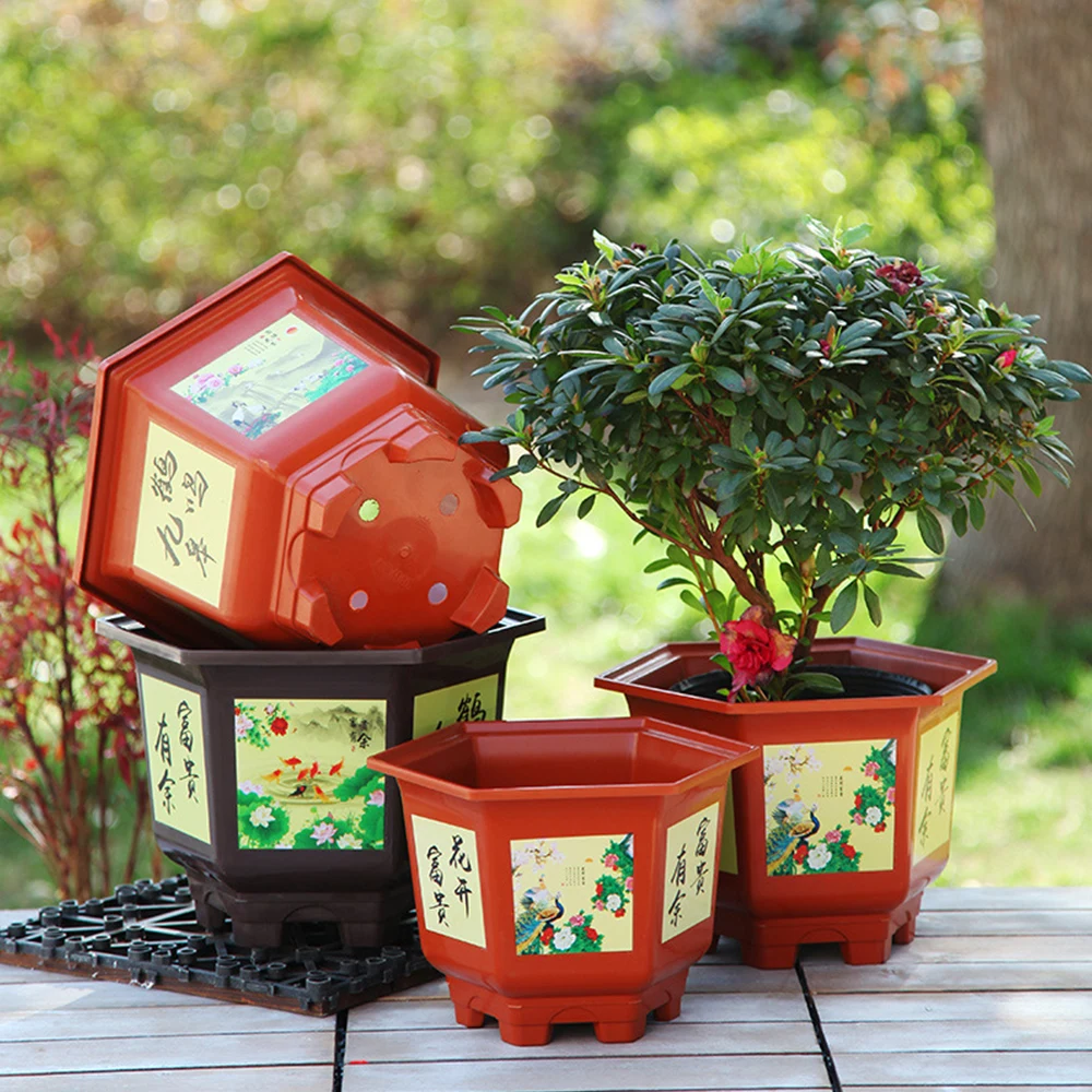 Water Planting Pots Thickened Large-diameter Hexagonal Pot Imitation Purple Sand Printing Fruit Tree Rose Flower Pot